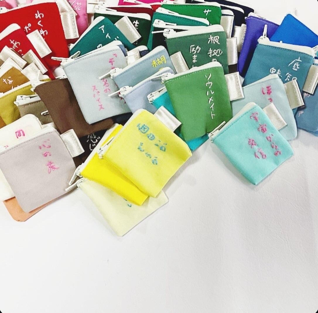 みたいな感じで、生活するなかで思い浮かぶ言葉を刺繍にし、それをちいさなポーチに仕上げました。