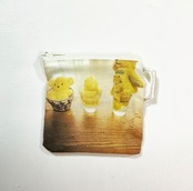 散歩中に見かけた草木、作ったごはんやおやつ、作った布こもの、仕事で見かけた古本など、日常のなかで見かけた光景を写真に撮り、それを布にし、ポーチに仕上げました。