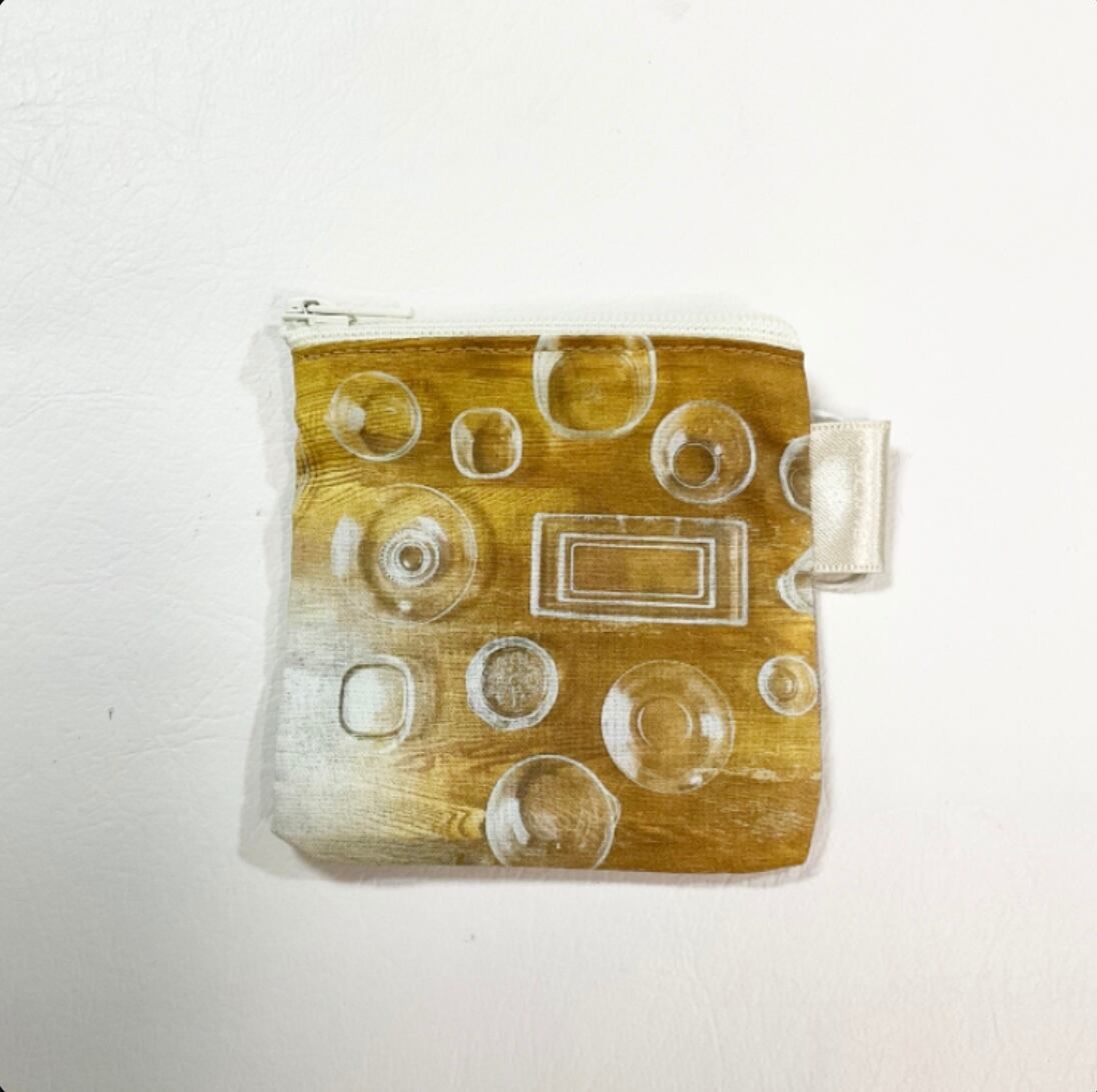散歩中に見かけた草木、作ったごはんやおやつ、作った布こもの、仕事で見かけた古本など、日常のなかで見かけた光景を写真に撮り、それを布にし、ポーチに仕上げました。