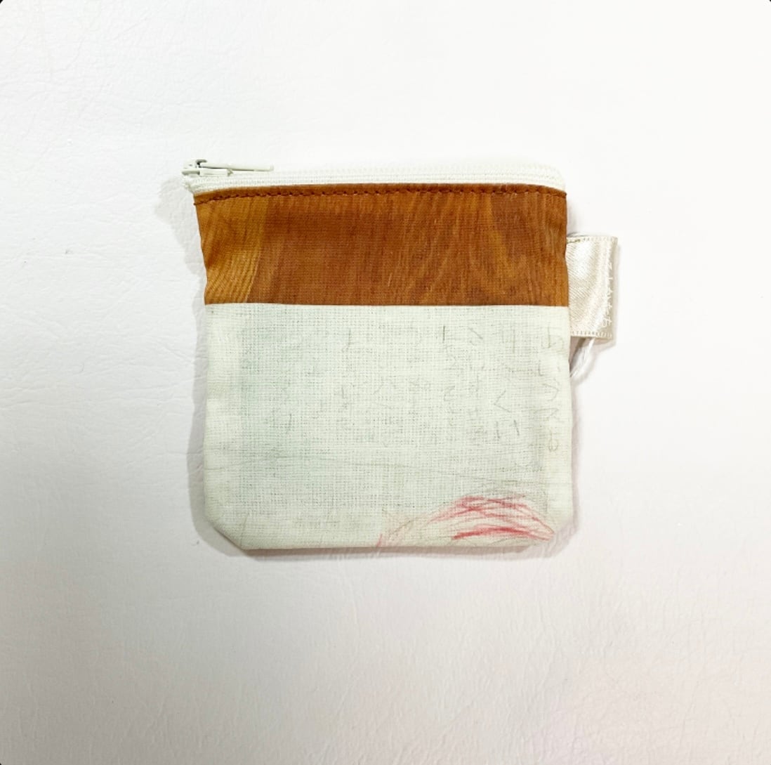 散歩中に見かけた草木、作ったごはんやおやつ、作った布こもの、仕事で見かけた古本など、日常のなかで見かけた光景を写真に撮り、それを布にし、ポーチに仕上げました。