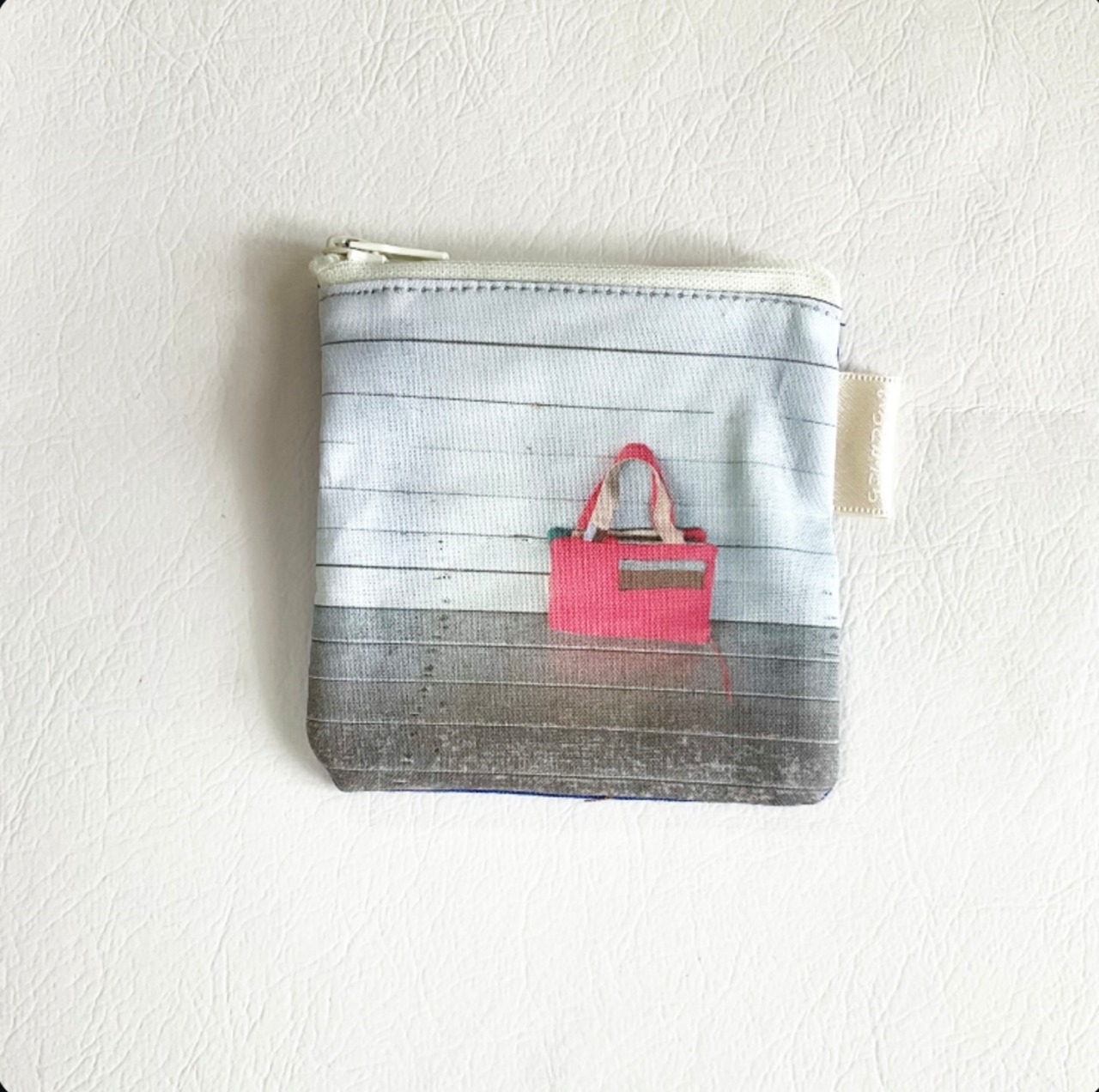 散歩中に見かけた草木、作ったごはんやおやつ、作った布こもの、仕事で見かけた古本など、日常のなかで見かけた光景を写真に撮り、それを布にし、ポーチに仕上げました。