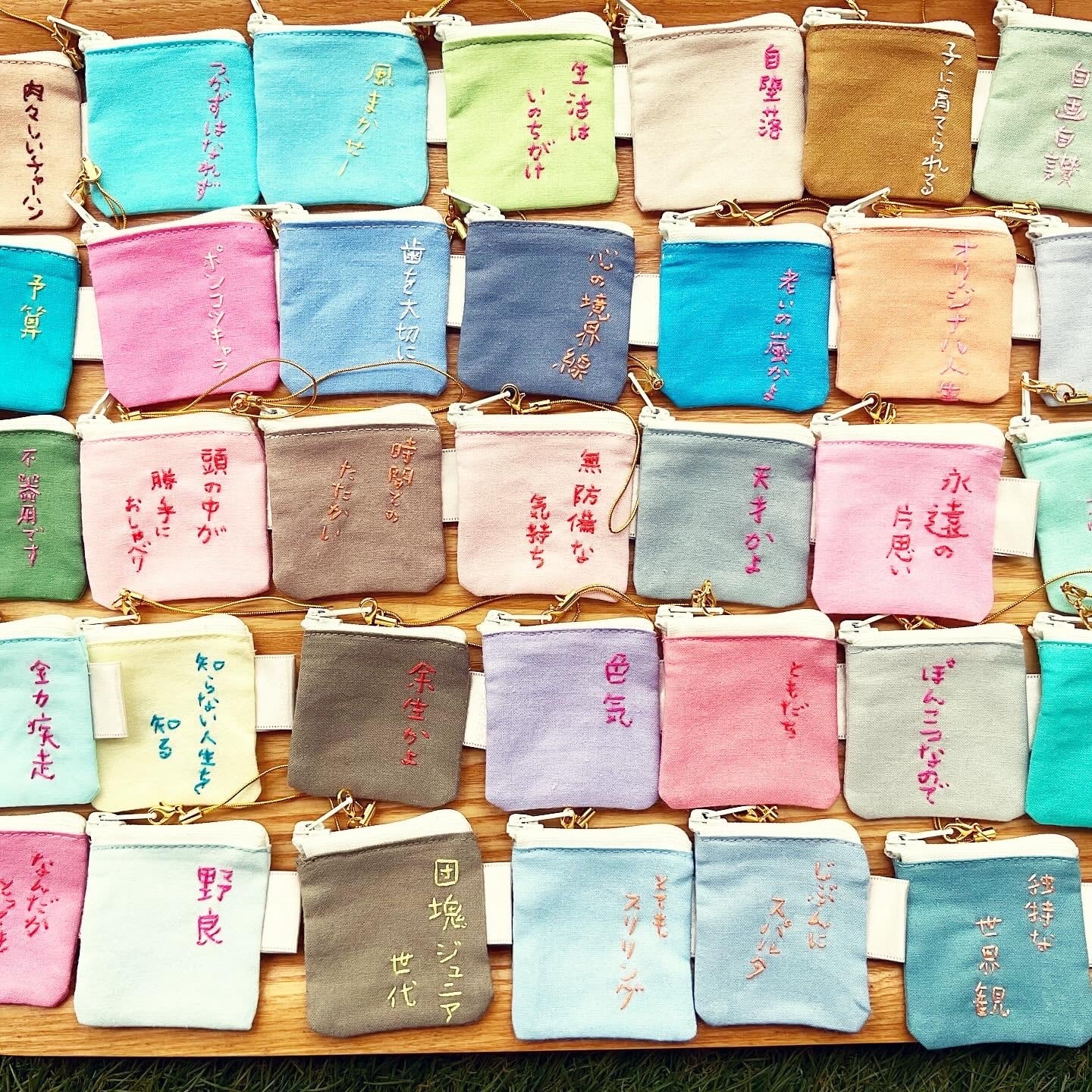 みたいな感じで、生活するなかで思い浮かぶ言葉を刺繍にし、それをちいさなポーチに仕上げました。