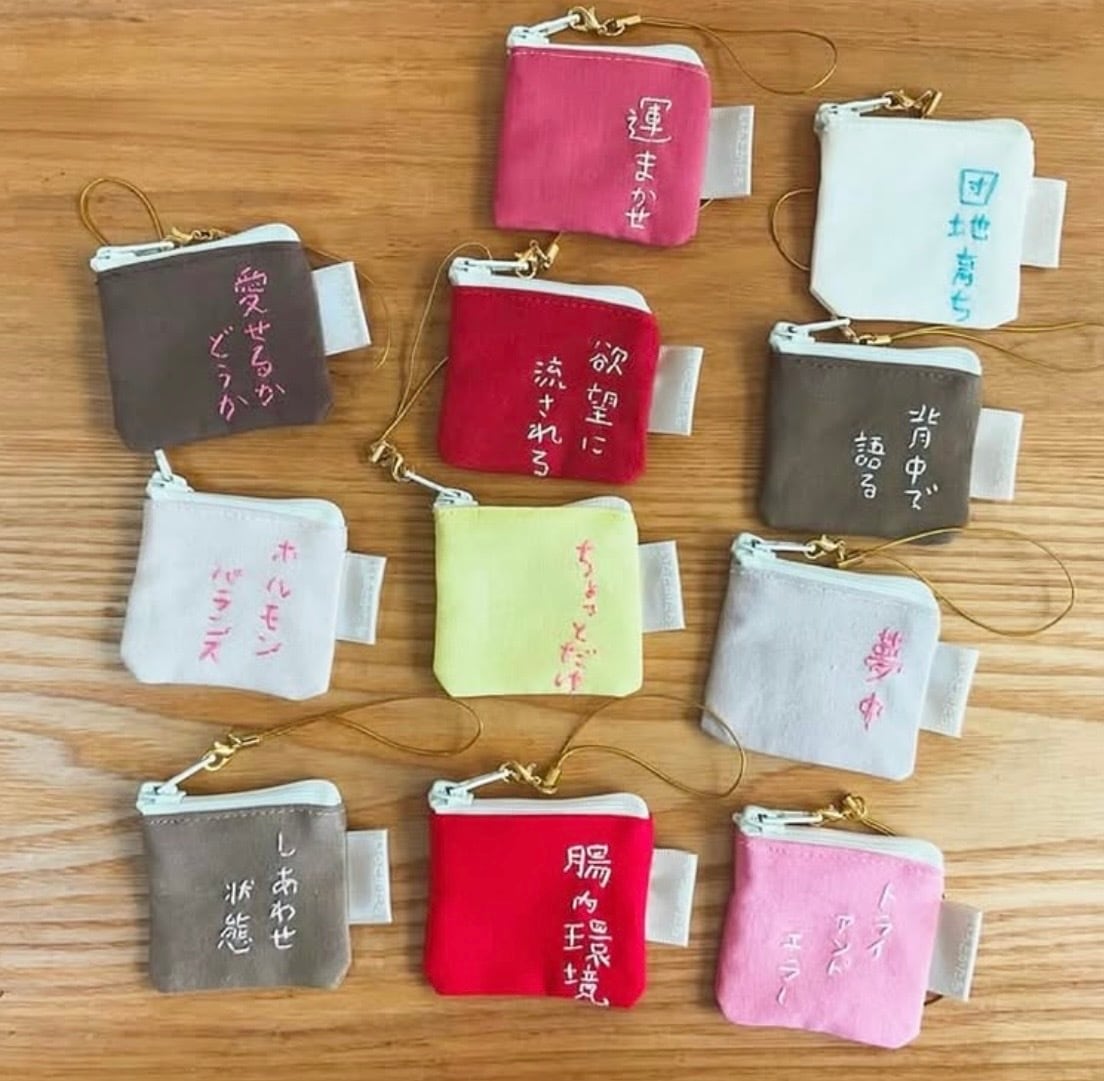 みたいな感じで、生活するなかで思い浮かぶ言葉を刺繍にし、それをちいさなポーチに仕上げました。