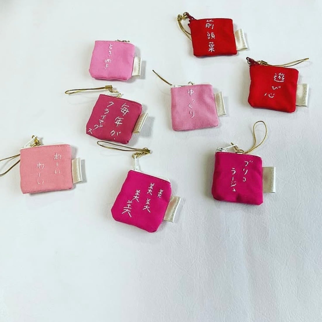 みたいな感じで、生活するなかで思い浮かぶ言葉を刺繍にし、それをちいさなポーチに仕上げました。