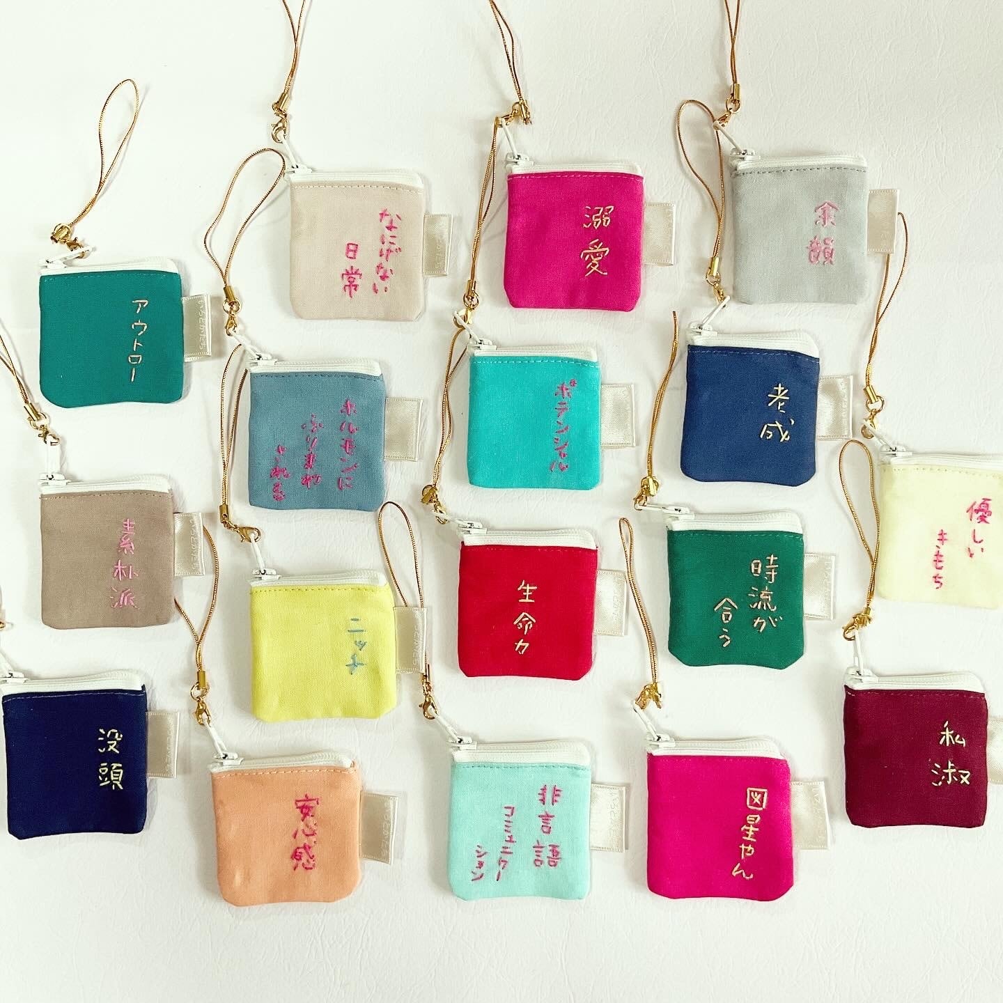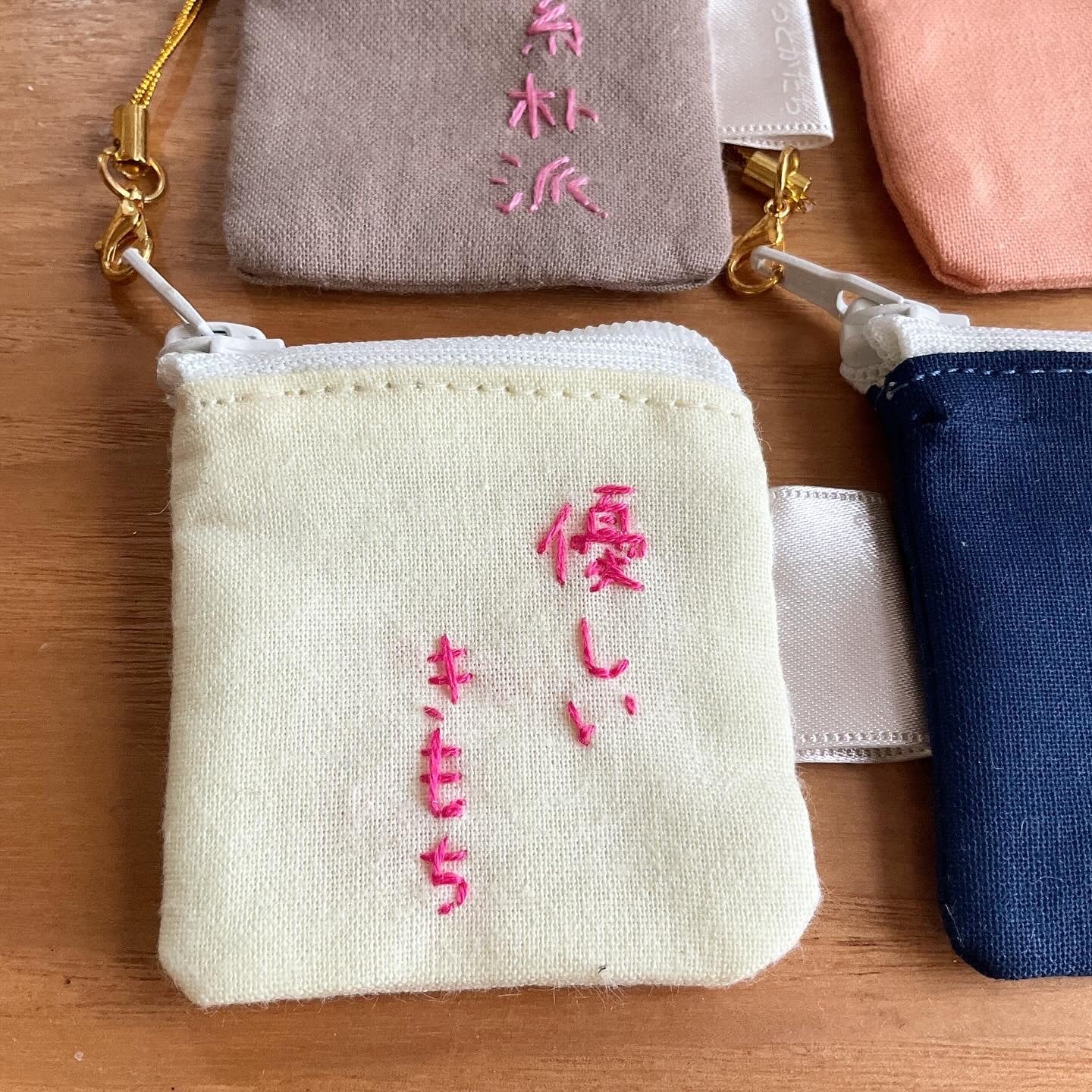 みたいな感じで、生活するなかで思い浮かぶ言葉を刺繍にし、それをちいさなポーチに仕上げました。