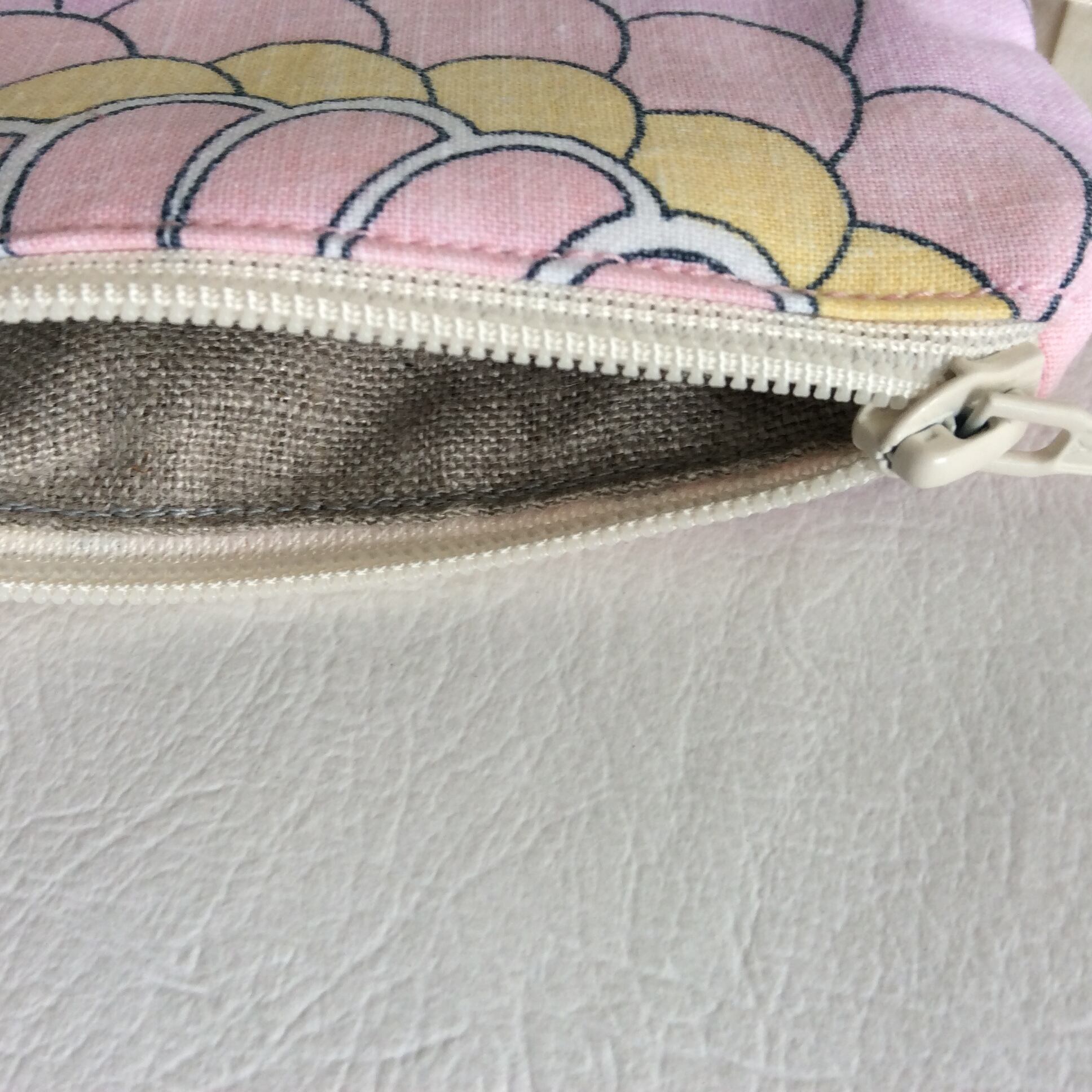 いろとかたちの定番商品のミニポーチを、ヨーロッパのビンテージ布を使って作りました。