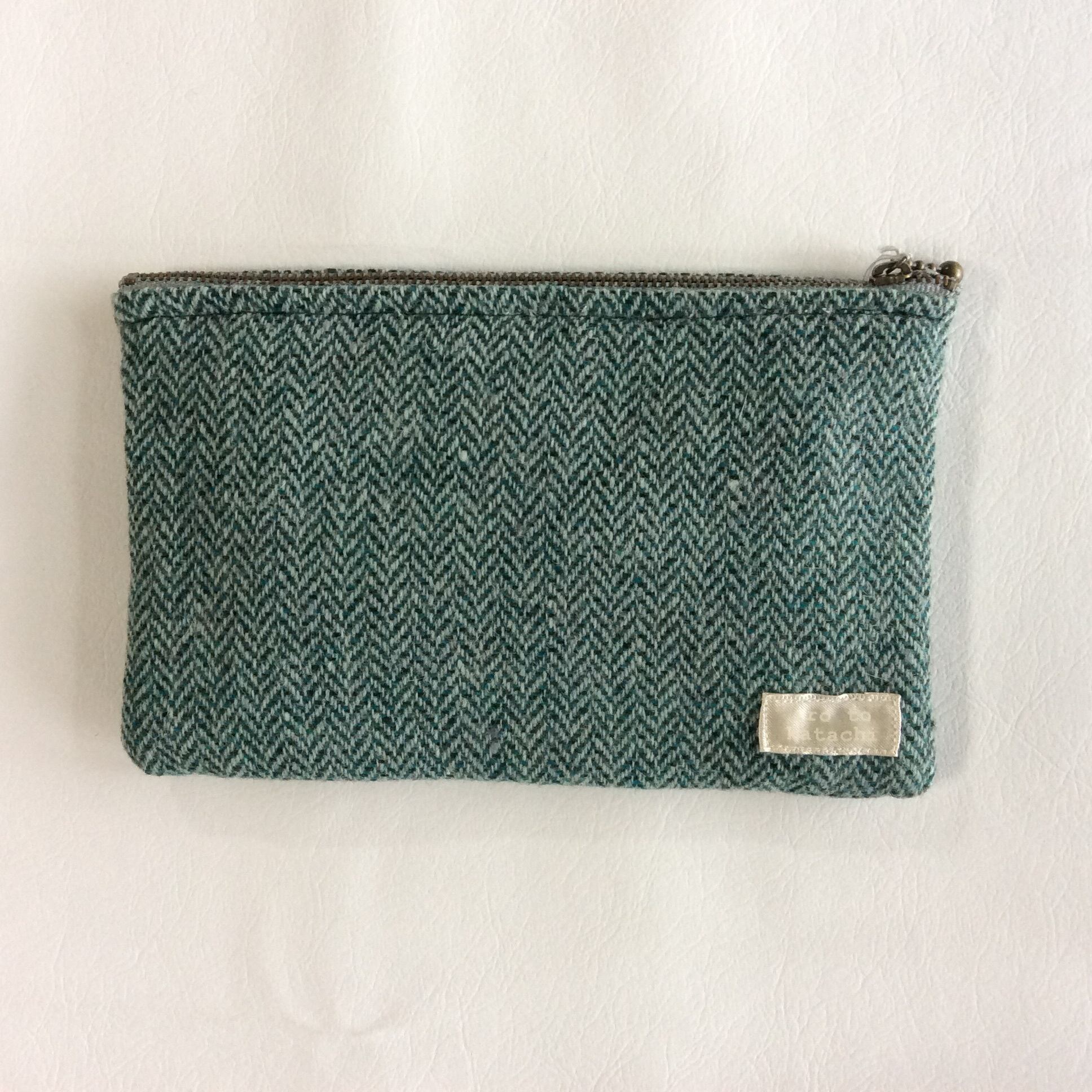 ポーチ ウール ヘリンボーン グレー&ネイビー&グリーン