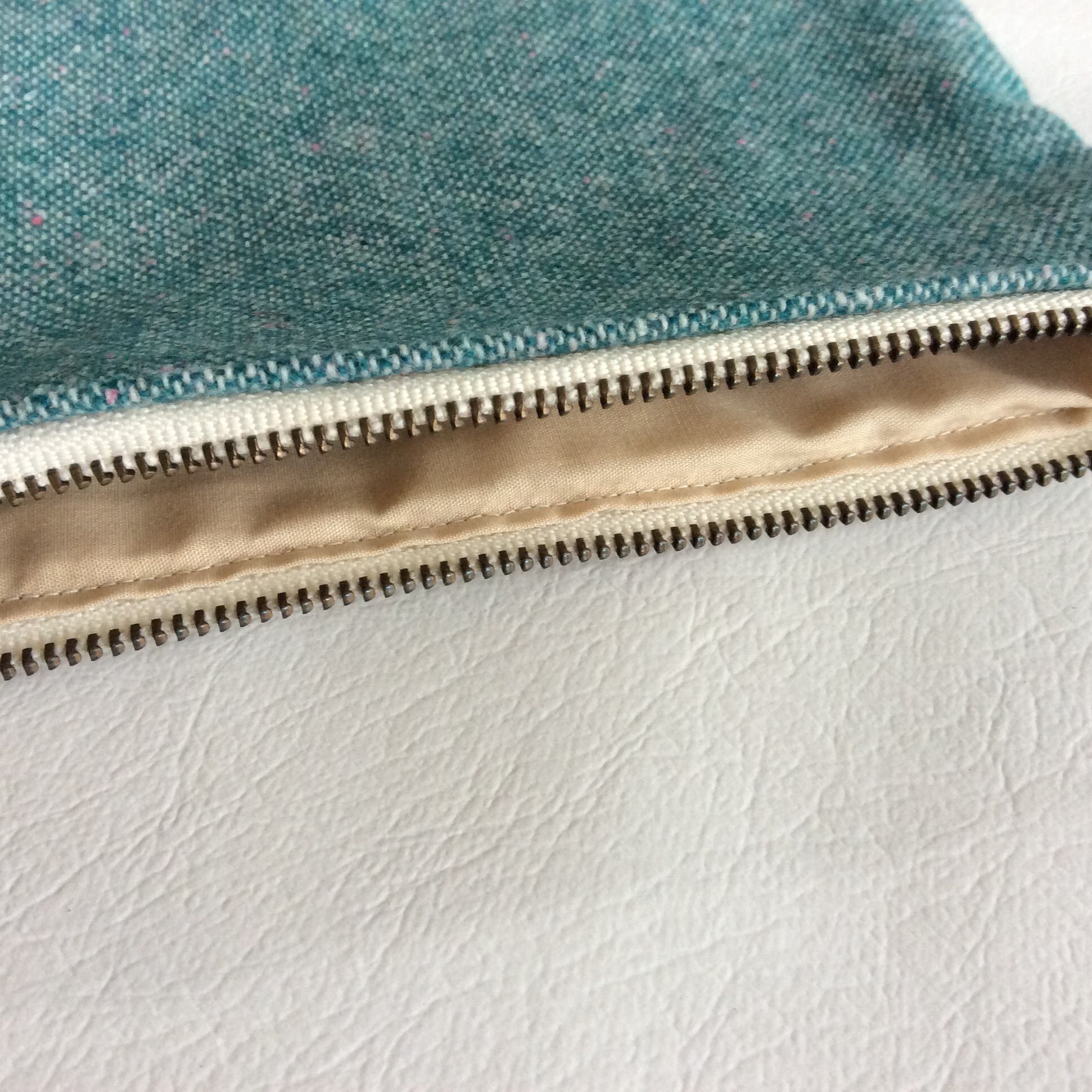 ウールの布をつかって、いろとかたちで人気の 横長フラットポーチを作りました。