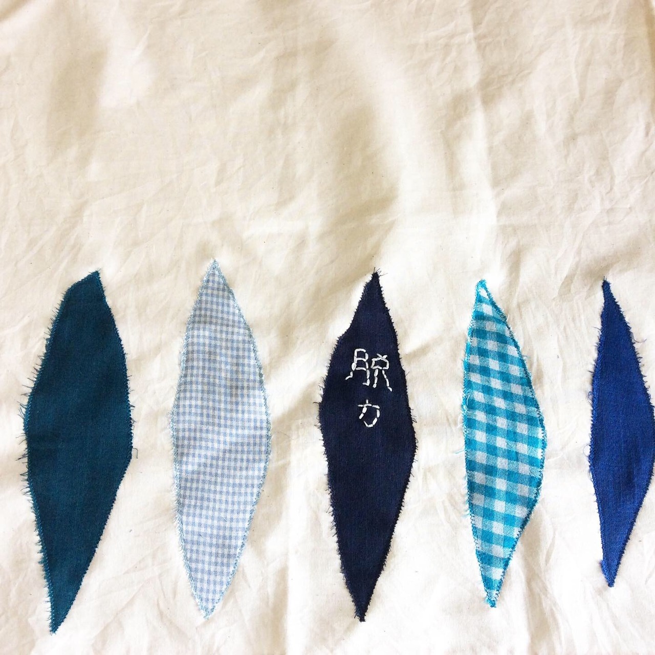 切り絵みたいな布に、さいきん夢中な「漢字の刺繍」。