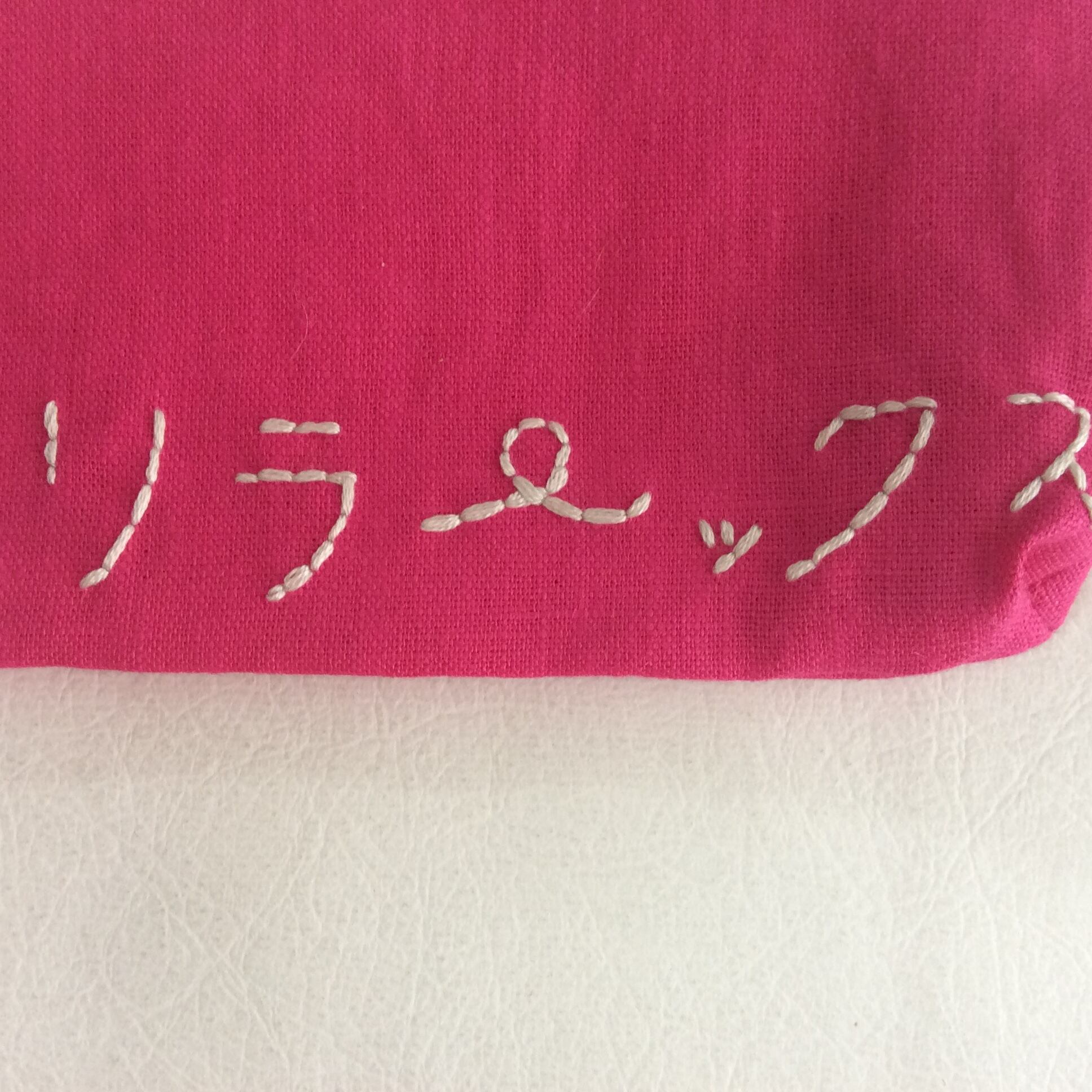 ペンケース たっぷりタイプ リネン ピンク 文字の刺繍 リラックス SALE