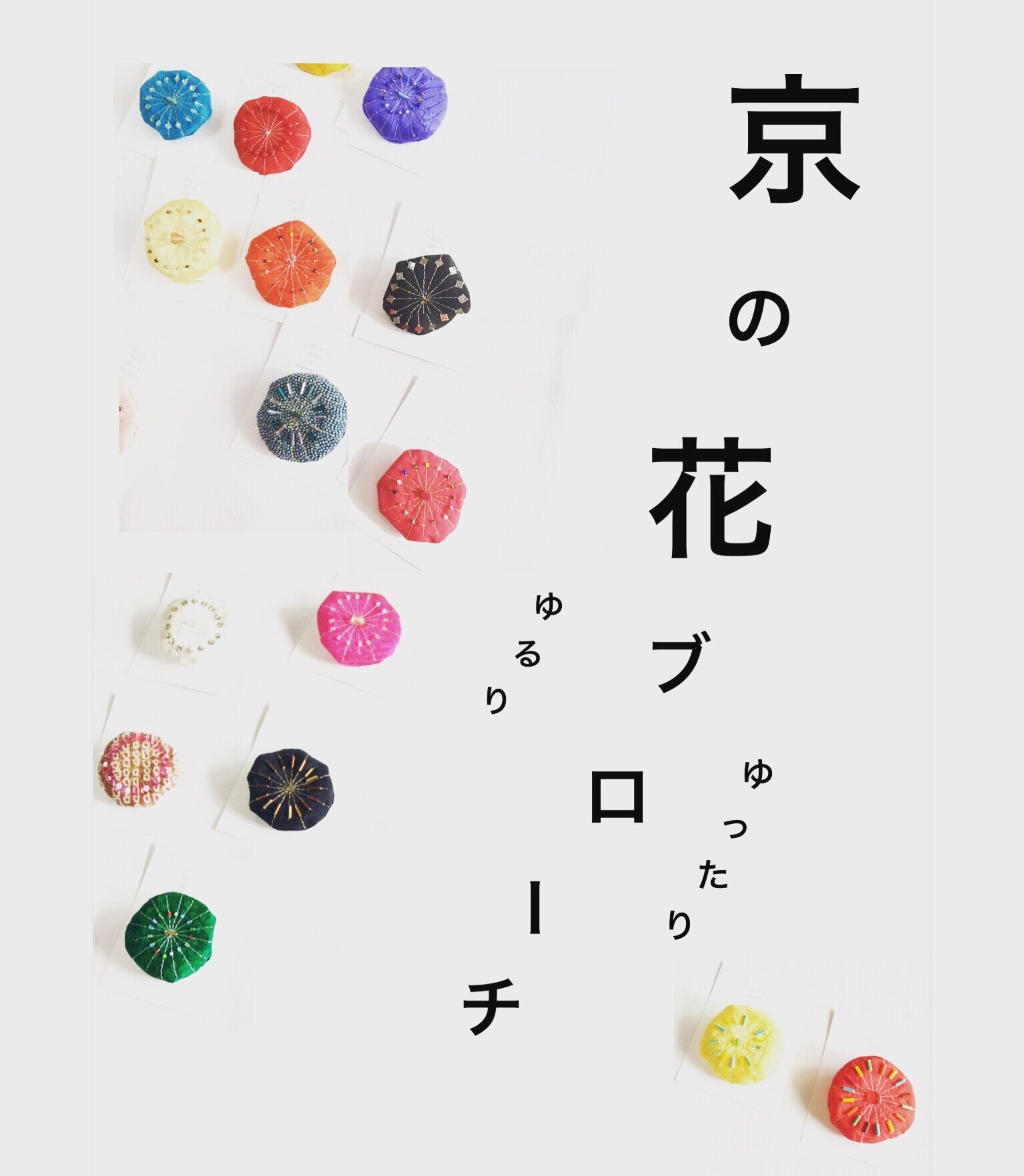 「京の花 ブローチ」は、着物地の光沢感とビーズのキラキラ感がよく合っています。ちょっと形がまんまるでなかったりする様子から、みなさまのそれぞれの生活のなかで「ゆるり。ゆったり。」を感じていただけたら嬉しいです。