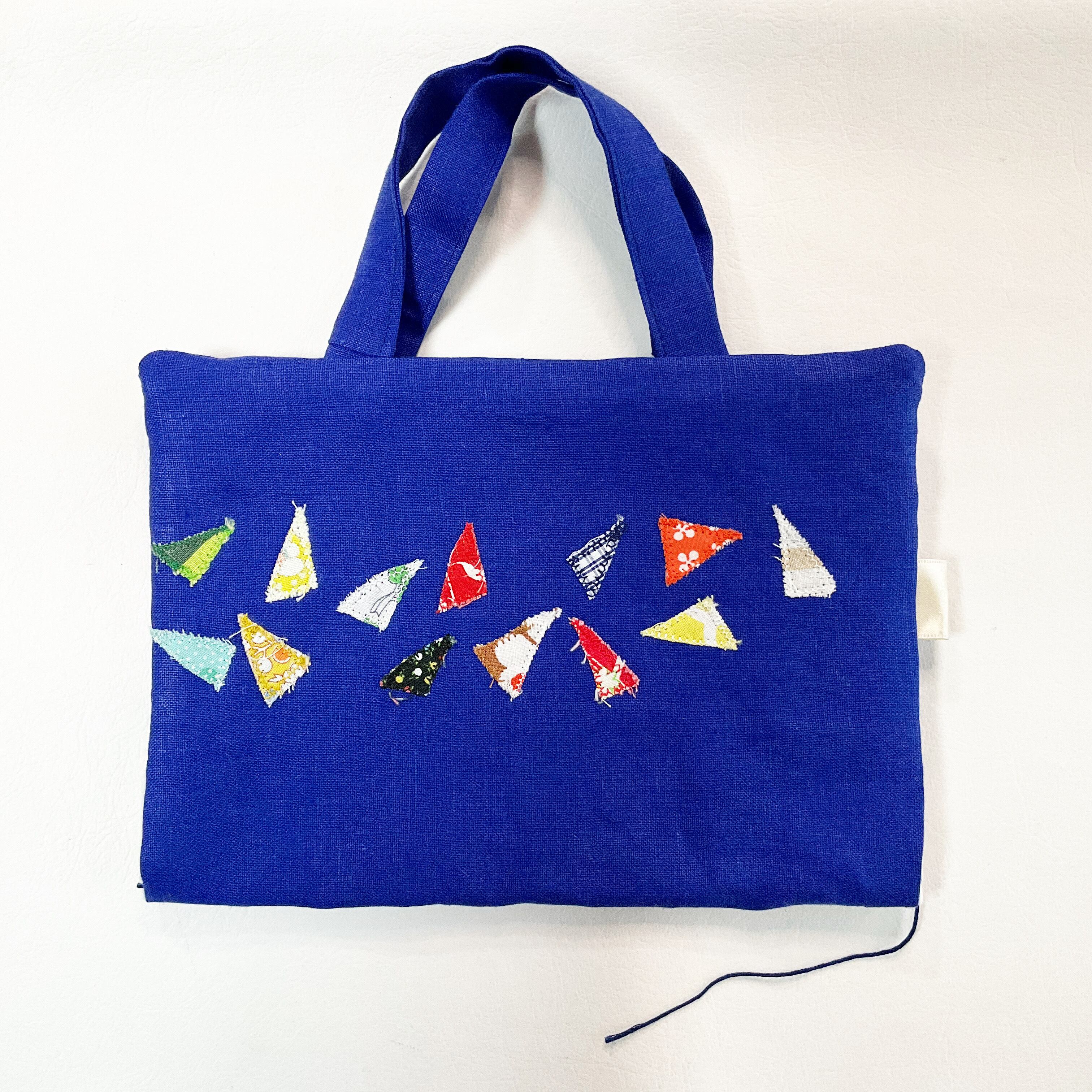 持ち手つき ブックカバー 文庫・新書・単行本(四六判)サイズ ネイビー&さんかく