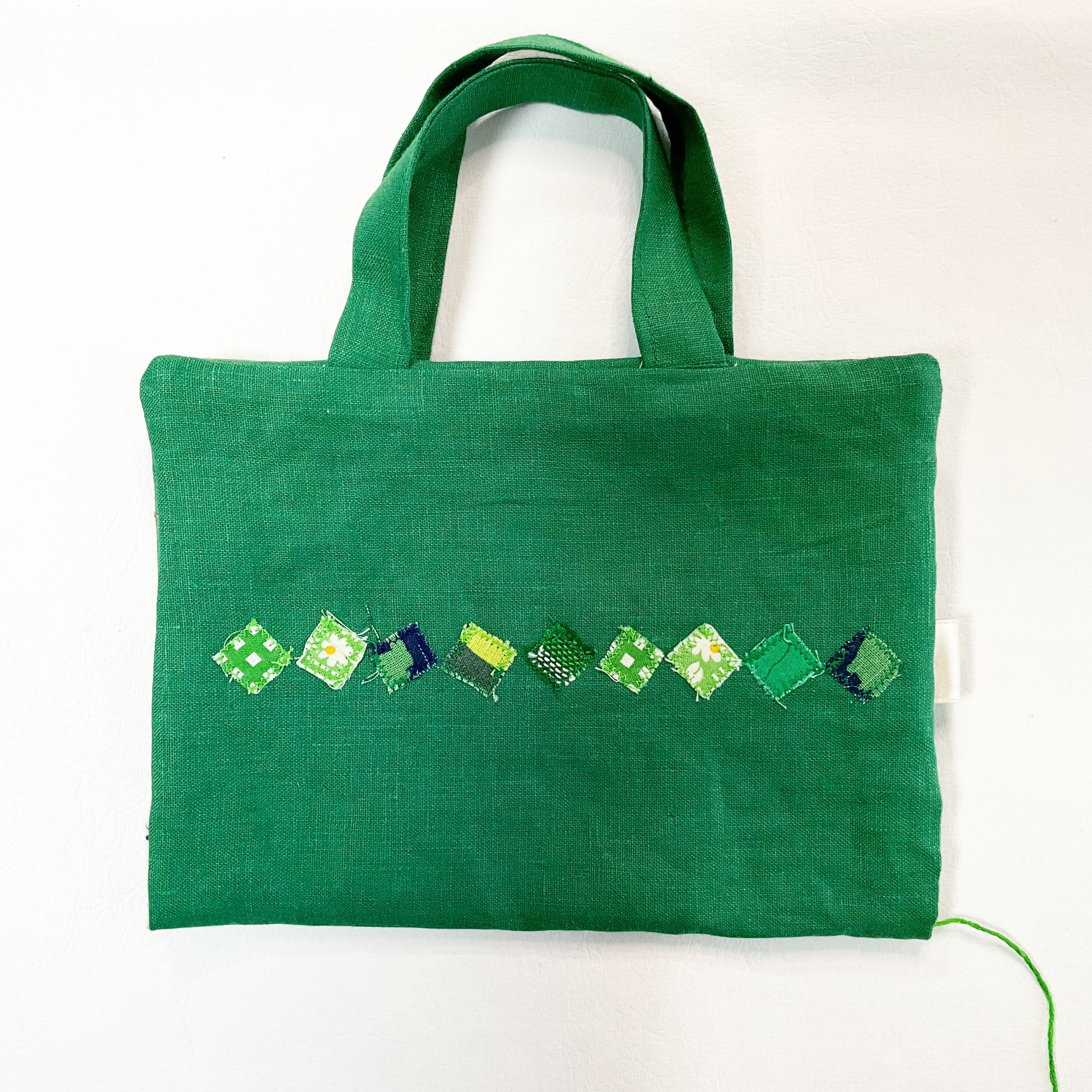 持ち手つき ブックカバー 文庫・新書・単行本(四六判)サイズ グリーン&しかく
