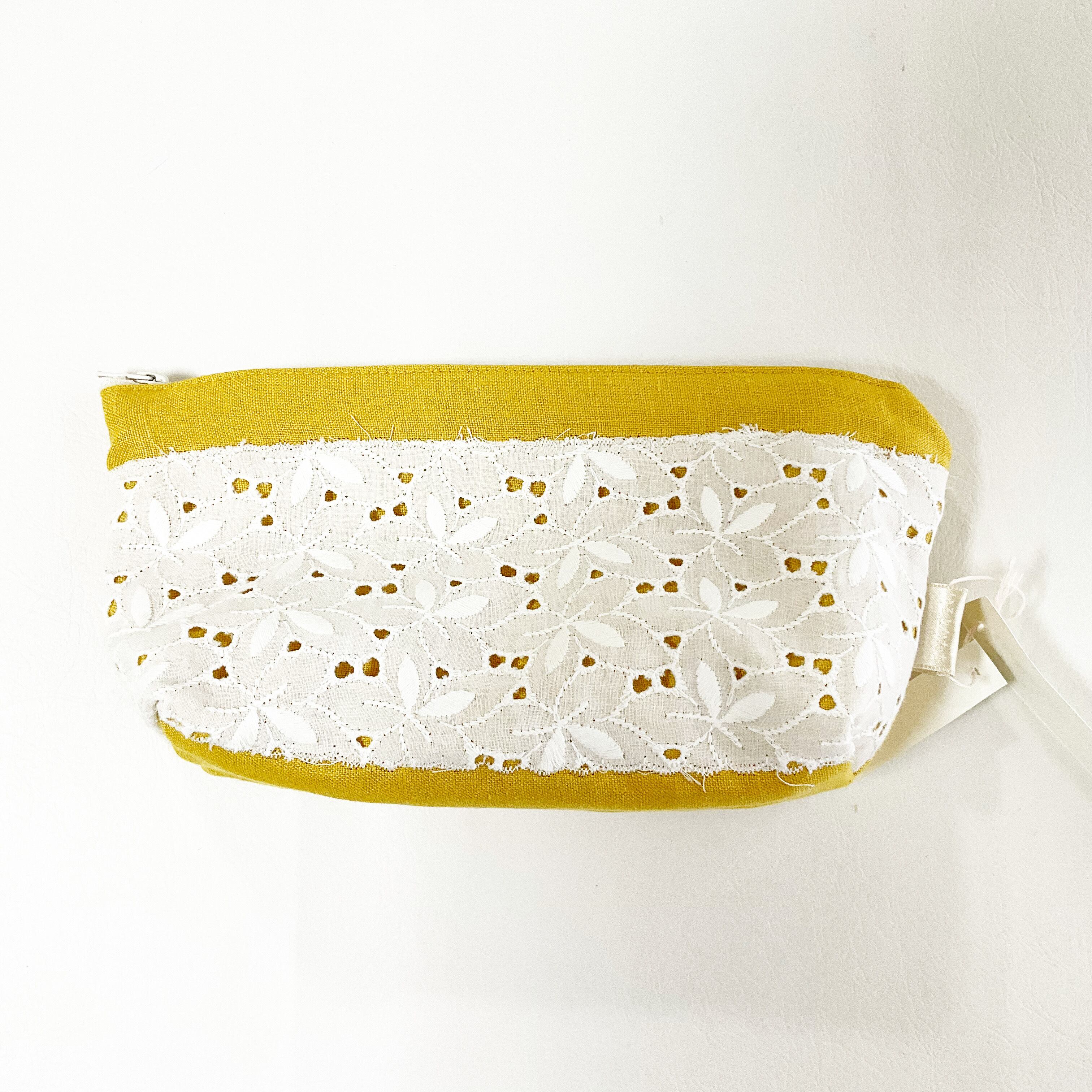 リネンとレースの組み合わせで化粧ポーチを作りました。