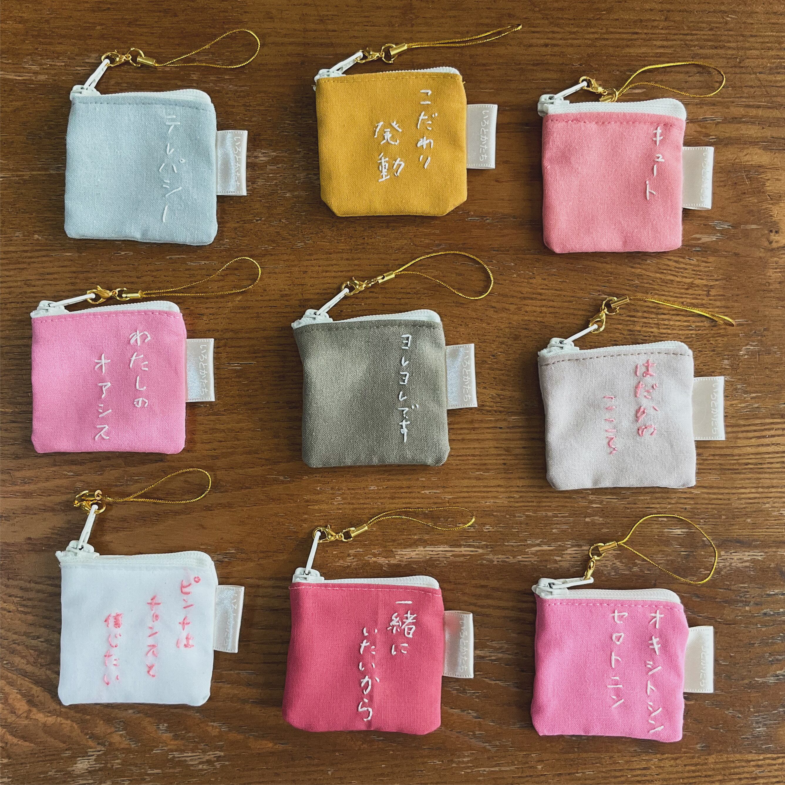 みたいな感じで、生活するなかで思い浮かぶ言葉を刺繍にし、それをちいさなポーチに仕上げました。