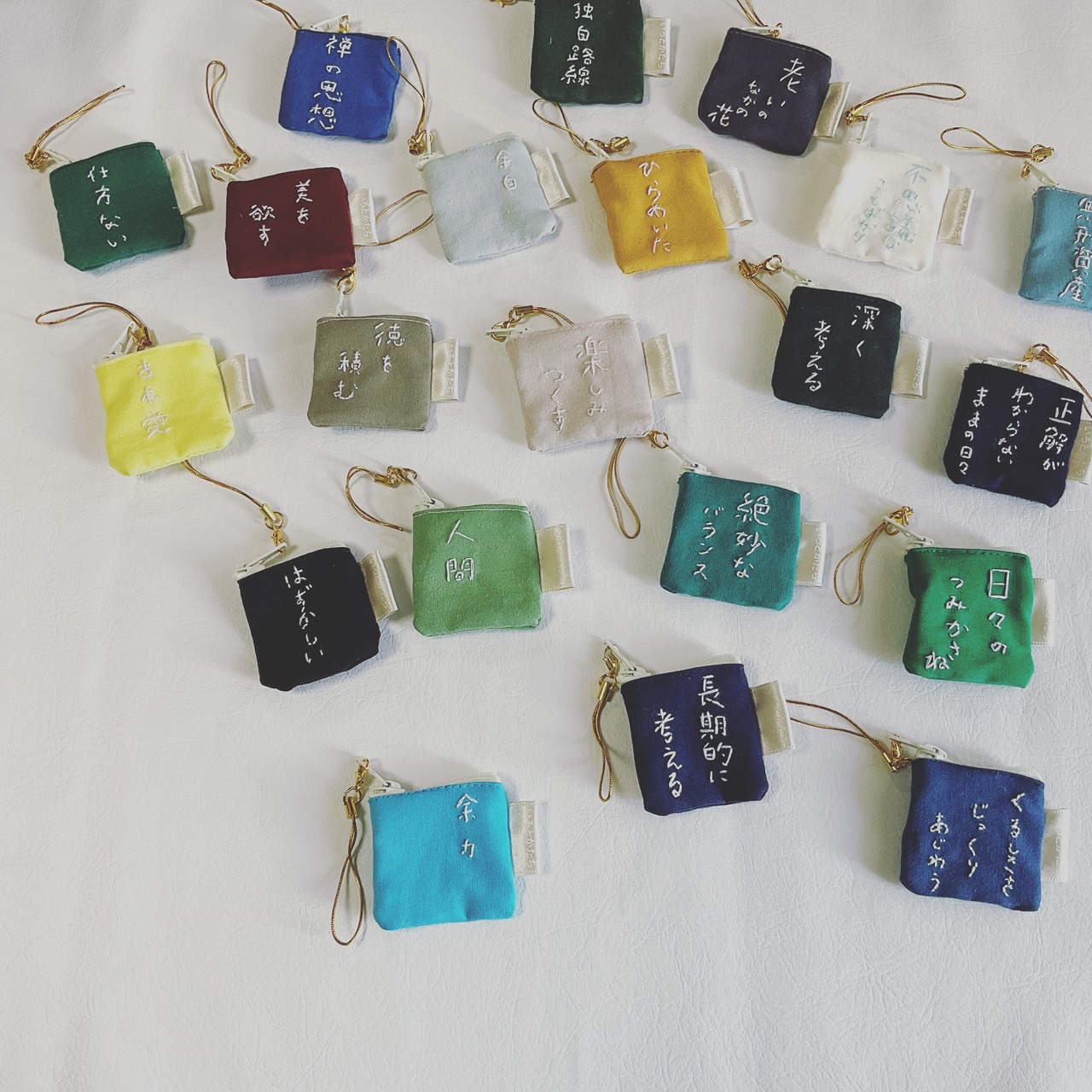 みたいな感じで、生活するなかで思い浮かぶ言葉を刺繍にし、それをちいさなポーチに仕上げました。