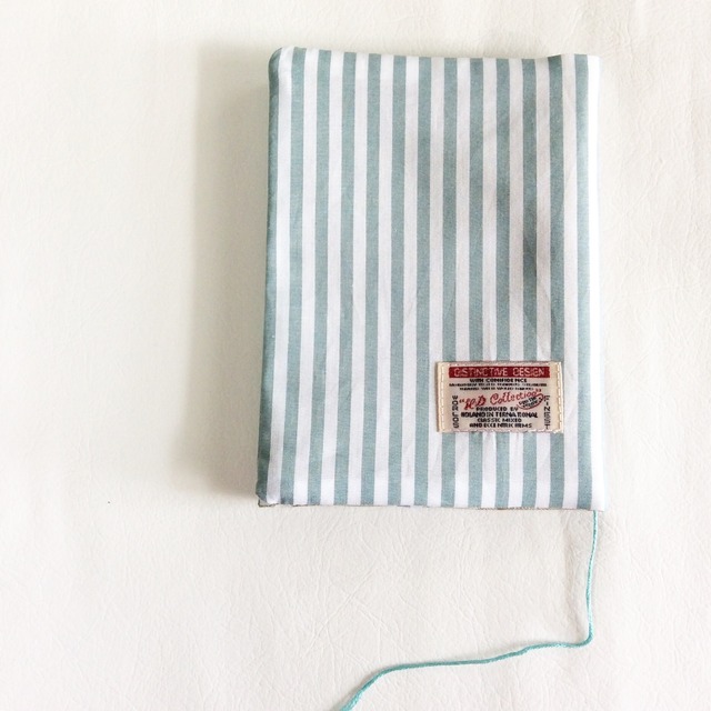 パソコンケース & クラッチ リネン グリーンにビンテージリボン